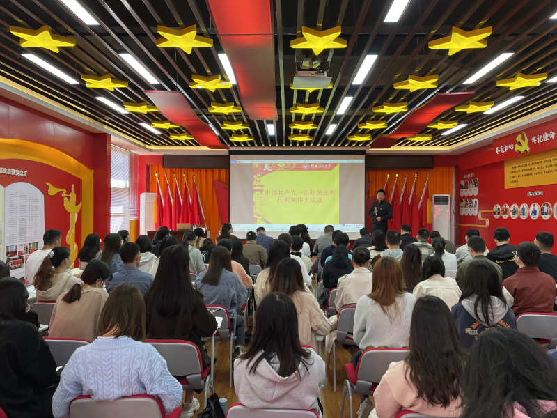 王璐书记从为什么要创立中国共产党入题,分析我国地主阶级、农民阶级、资产阶级救国方案与吸取的教训,回顾中国共产党创立和发展的光辉历程,同时用详实的事例与感人的视频充分展示了中国共产党团结带领全国各族人民在新民主主义革命时期、社会主义革命和建设时期、改革开放和社会主义现代化建设新时期、中国特色社会主义新时代四个历史时期取得的伟大成就。