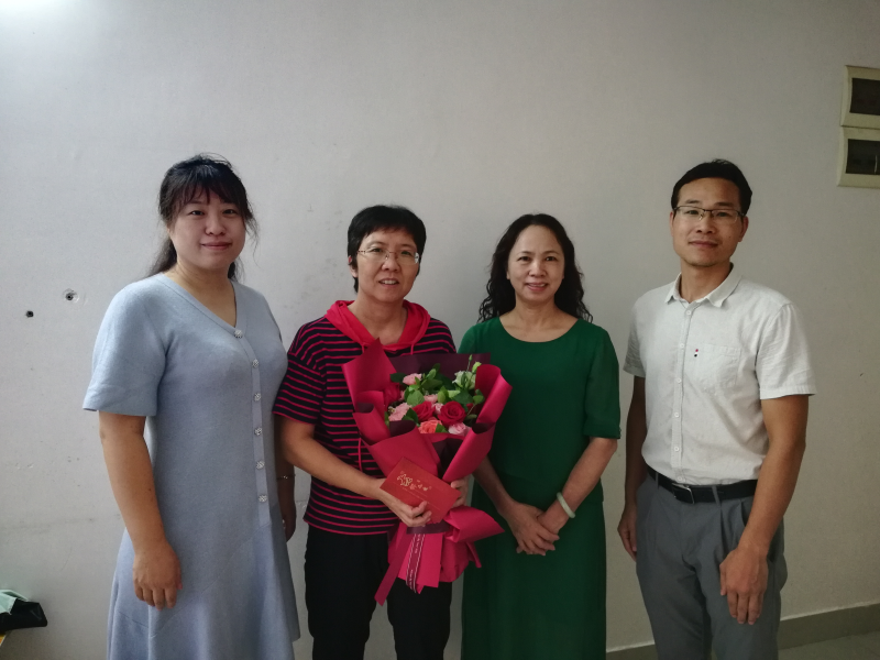 英国上市公司365工会主席、副校长陈东莲(右二)看望慰问生病教职工
