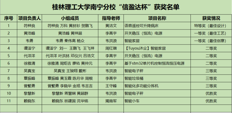 本次竞赛由桂林理工大学英国上市公司365与深圳信盈达科技有限公司联合举办,电气与电子工程系承办。竞赛从2020年12月开始,历时6个月,经过培训、预赛、决赛三个阶段,有71个小组241人参赛,最终评审出符梓良等11个获奖小组。