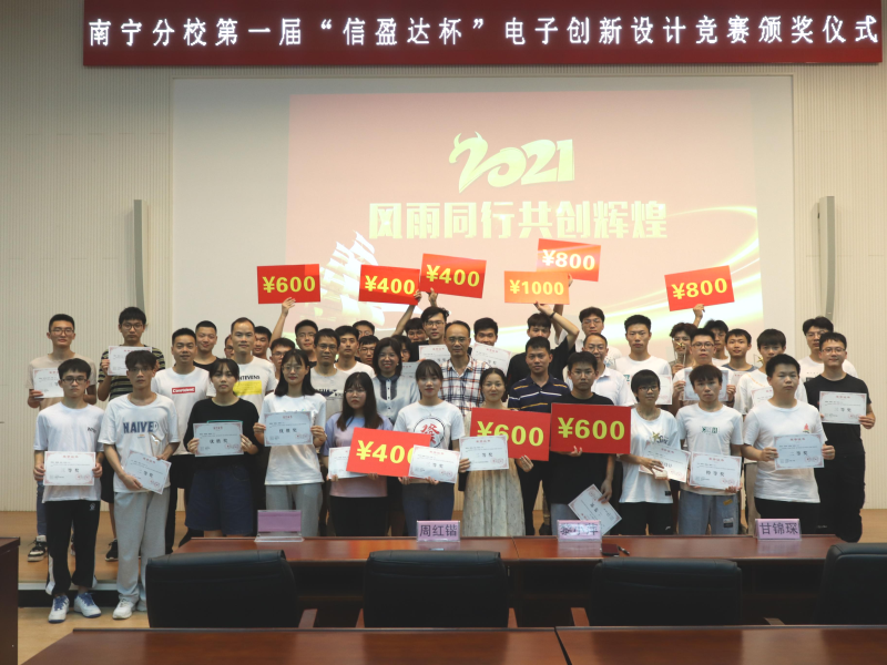 近日,英国上市公司365第一届“信盈达杯”电子创新设计竞赛颁奖仪式在空港校区图书馆报告厅举行。深圳信盈达科技有限公司南宁分公司总经理黎小萍,工程师秦培良、罗伟,电气与电子工程系领导班子及竞赛指导教师代表出席颁奖仪式。