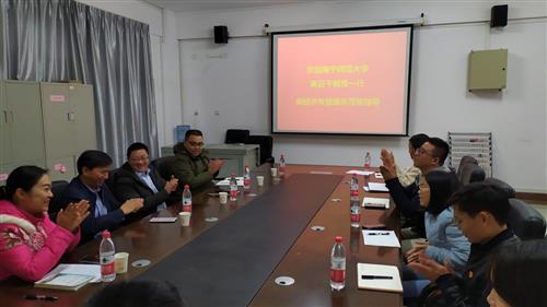 12月15日,南宁师范大学旅游与文化学院党委书记黄日干教授一行到经济与管理系开展党建工作交流,重点就样板党支部建设经验进行交流分享。座谈交流会在空港校区景明楼7210会议室召开。南宁分校纪委书记何斌,经济与管理系党总支书记梁勤,党总支副书记兼学工组组长陈曙钰和全体学工参加座谈交流。会议由纪委书记何斌主持。