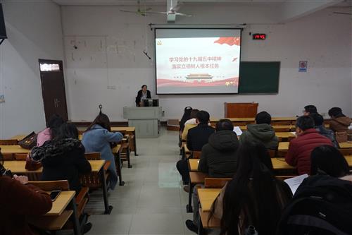 陈东莲副校长指出,党的十九届五中全会,是以习近平同志为核心的党中央立足中华民族伟大复兴战略全局和世界百年未有之大变局,在我国决胜全面建成小康社会取得决定性成就、“两个一百年”奋斗目标历史性交汇的关键时期,召开的一次具有全局性、历史性意义的重要会议。全会从党和国家事业发展的全局和长远出发,重点研究了“十四五”规划和二〇三五年远景目标并提出建议,吹响了全面建设社会主义现代化国家的时代号角,擘画了“十四五”时期经济社会发展的宏伟蓝图,科学回答了事关全局的重大理论和实践问题,对动员和激励全党全国各族人民,战胜前进道路上的各种风险挑战,为全面建设社会主义现代化国家开好局、起好步,对实现“两个一百年”奋斗目标、实现中华民族伟大复兴的中国梦,具有重大的现实意义和深远的历史影响。