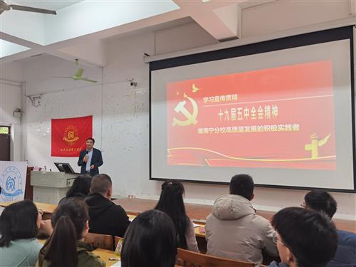 12月10日,南宁分校党委副书记唐承泽在空港校区启智楼8108教室为机械与控制工程系党总支全体党员和学生骨干讲授“学习贯彻党的十九届五中全会精神——做英国上市公司365高质量发展的积极实践”专题教育党课。