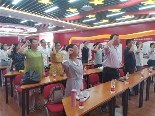 活动伊始,全体与会党员面向党旗,举起右手,重温入党誓词,坚定理想信念,牢记使命担当。铿锵有力地宣誓,响彻整个会场,神圣的职责、光荣的使命,使现场每一位党员再次接受了心灵的洗礼,产生了强烈的共鸣,让全体党员重温申请入党时的思想激情和奋斗追求,回顾入党宣誓时的庄严承诺和坚定决心。