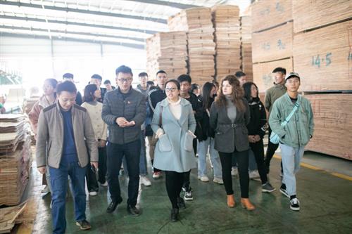 在山圩产业园区,同学们观看了园区简介视频,了解了园区概况、投资优势、成本要素参考、优惠政策以及招商方向和入园流程等,参观了园区木材展品以及天德木业木材加工车间。