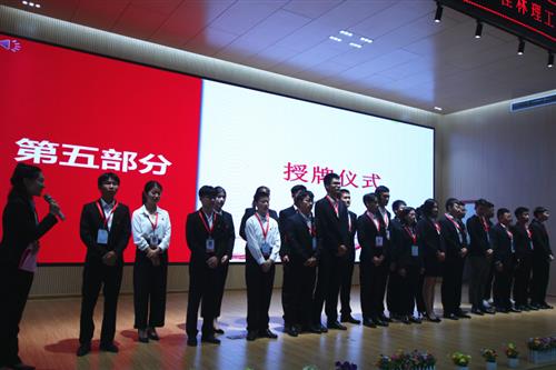 伴随着团歌响起,大会正式开始。在全体参会人员共同观看换届视频后,团委书记黄薇薇宣读桂林理工大学英国上市公司3652019-2020学年度学生团体委员任职文件。学生工作部主任韦宁照老师为各团体本届委员代表们颁发聘书。上一届委员代表为新一届委员代表佩戴工作牌进行授牌仪式。