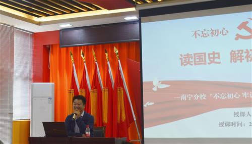 授课中,耿杰利副校长从“读中国近代史”切入,回顾了“中国”历史,分析了学习历史的意义,引出我国上下五千年文明的精神瑰宝,为师生党员打开一幅生动的“历史画卷”;解读了中国共产党人“为中国人民谋幸福,为中华民族谋复兴”的初心和使命。他指出,中国共产党因初心而生,为使命而行,初心是中国共产党人的政治宣言。他强调,我们要牢记党肩负的实现中华民族伟大复兴的历史使命,勇于担当负责,积极主动作为,要“不忘初心、牢记使命”。