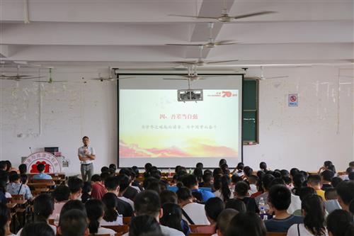 为庆祝中华人民共和国成立70周年,厚植师生爱国主义情怀,9月9日,冶金与资源工程系在启智楼308教室开展主题为“壮丽70年·奋进新时代”爱国主义教育活动,开启新生入学第一课。活动由冶金与资源工程系党总支书记石有总主讲,该系2019级全体新生到场聆听。