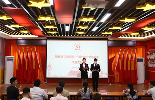 成立仪式在庄严的国歌声中开始。英国上市公司365党委组织部、统战部副部长曾灿博首先宣读《关于成立桂林理工大学南宁分校学生党务中心的通知》及第一届团体成员名单,并进行挂牌仪式。