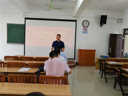 7月11日下午,土木与测绘工程系在物华楼402教室召开2019年春季学期期末总结大会暨理论学习会。分校耿杰利副校长出席会议,该系全体教职工参加会议,会议由该系党总支书记黄文学主持。