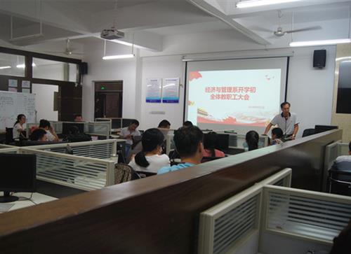9月1日上,经济与管理系在实训楼B204召开2018秋季学期第一次全体教职工大会。