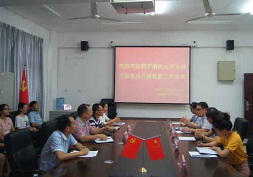 为深入贯彻党的十九大精神和习近平总书记系列重要讲话精神,落实全面从严治党要求,创新党建活动方式,增强党组织生活活力,增强高校与地方的合作交流,5月30日,经济与管理系党总支在空港校区景明楼210会议室与昌平乡和新宁镇机关支部开展联建交流活动。新宁镇党委副书记兼人大主席陆雄柏和昌平乡党委副书记兼人大主席程志福各自率队出席活动。经济与管理系主任周子平,副主任桑显洁,党总支副书记兼学工组长陈曙钰,辅导员代表等热情接待来访客人。