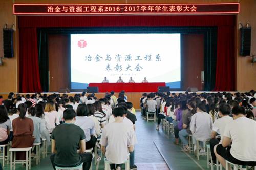 为表彰先进,鼓励广大学生向优秀学生看齐,共同致力于建设“魅力冶金”,4月3日下午,冶金系在体育馆内召开2016-2017学年度学生表彰大会。冶金系党总支书记石有总、党总支副书记兼学工组长黄运堪,辅导员黄观媛、吴祖枝,以及该系全体在校学生参加表彰会。