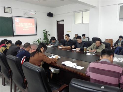 11月7日下午,机械系在藏修楼205会议室召开“学习贯彻落实学校思想政治工作会议精神”专题研究会。分校副校长唐承泽出席会议,机械系全体教职工参加会议。会议由该系党总支书记袁斌主持。