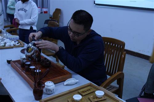 学习活动中,该系旅游管理专业的学生为老师们奉上了唯美的茶道表演,伴随着悠扬的旋律,学生们用优美娴熟的专业动作诠释了她们对中国茶道的独特见解。在专业老师的指导下,老师们跃跃欲试,选茶、辨水、选具、涤器、投茶,纷纷尝试沏泡茶汤和品茶,在优雅的氛围中,得到美的享受和情操的熏陶。
