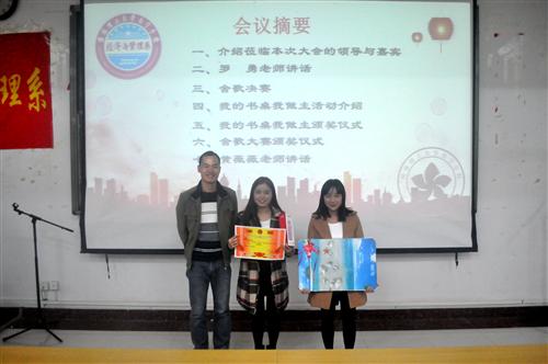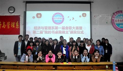 12月15日下午,经济与管理系于空港校区启智楼101教室举办了首届舍歌大赛暨第二届“我的书桌我做主”颁奖仪式。分校学生工作部副主任罗勇、该系党总支副书记黄薇薇及全体辅导员老师出席此次比赛并担任比赛评委。