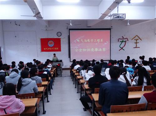 12月1日电气与电子工程系在空港校区启智楼8101教室举行安全知识竞赛决赛。分校保卫部副主任邹志友、系党总支书记李培良、副书记甘锦琛、全体辅导员、全体学生干部及2016级部分班级学生,共计200余人参加。