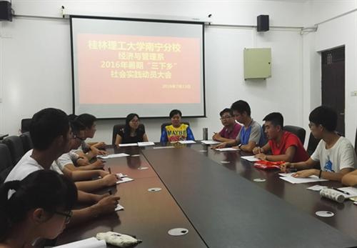 为培养广大青年学生有理想、有追求、有担当、有作为、有品质、有修养,引导和帮助他们在社会实践中受教育、长才干、做贡献,7月14日-18日,经济与管理系组织一支社会实践服务团赴扶绥县东门镇开展2016年暑期“三下乡”社会实践服务活动。该系党总支副书记黄薇薇,辅导员陈平东、潘显鹏带领18名队员参加了活动。