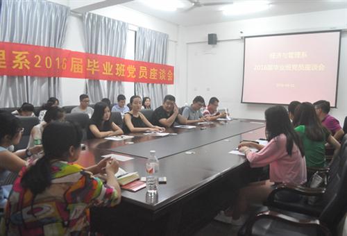 6月22日晚,经济与管理系党总支在空港校区景明楼210会议室召开2016届毕业班党员座谈会。该系党支部书记梁勤,副书记黄薇薇,各支部书记及2016届毕业班党员参加了座谈。会议由该系第二党支部书记黄维主持。