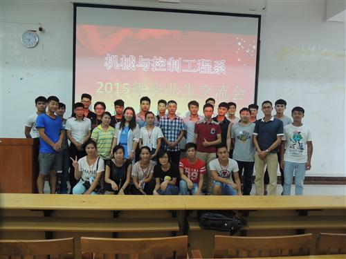 为做好2015届毕业生离校工作,保证毕业生安全文明离校,机械与控制工程系开展充分发挥毕业生党员的先锋模范带头作用,于6月23日-26日期间开展以“空港缘·师生情”为主题的毕业生党员“四个一”系列活动,该系党总支书记袁斌、副主任刘高鹏、副书记刘术刚、毕业班班主任以及全体毕业生党员参加了本次系列活动。