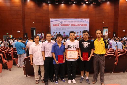 7月3日,2015年全国职业院校技能大赛高职组“百科融创杯”嵌入式产品开发赛项在天津电子信息职业技术学院落下帷幕,共有来自全国26个省市自治区的65支代表队参加了本项赛事。本赛项包含安全操作与制作工艺、赛道任务与功能测试、时间竞速三部分。经过激烈角逐,由电气与电子工程系学生陈科霖、严业豪和陈悉律组成的参赛队,团结协作,顽强拼搏,荣获团体三等奖。