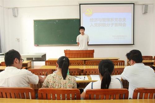 为加强对入党积极分子的考核,严格把好学生党员发展关,搭建公平公正的发展平台,5月12日下午,经济与管理系党总支在空港校区物华楼举行了党员发展答辩会。该系党支部书记梁勤、副书记黄薇薇以及各支部委员出席了答辩会并担任评委,于冉冉等36位入党积极分子参加了答辩。