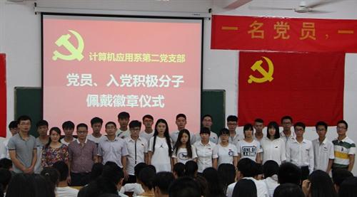 5月7日下午,计算机应用系第二党支部学生党员、入党积极分子佩戴徽章仪式在启智楼8206室举行,该系党总支书记陈佳、副书记吴晓阳出席了仪式,各年级辅导员及在校的所有党员、入党积极分子参加了仪式。