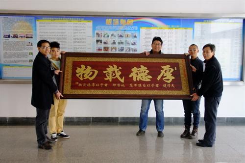 2015年1月19日上午,冶金技术12级学生吴佳和、陈帅等同学来到探源楼二楼代表2012级冶金技术专业学生向系部赠送了书法牌匾。该系领导李旭光、陆宏标、王军正代表冶金系接受了牌匾。学工办房勋老师参加了此活动。