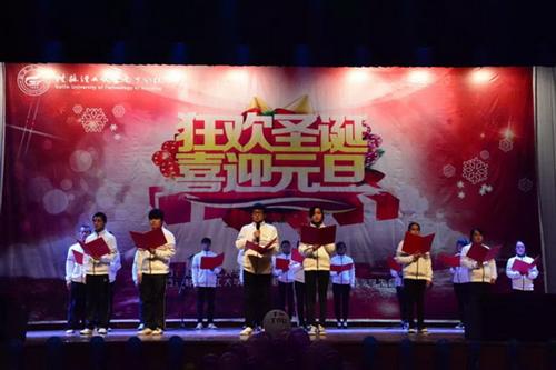 晚会现场温馨欢快,随着音乐的响起,The gun style CREW带来的潮流街舞《桂工风格》拉开了本次晚会的序幕,现场观众跟着节奏打着拍子;歌曲《会痛的石头》、《街头BATTLE》、《Marry Christmas》轮番登场,风格各异,或浪漫温馨,或轻快悠扬,或活泼动感;计应14-1班带来的《小人舞》,将“小人物”演绎的生动活泼,引来在场观众笑声一片;“摩擦,摩擦”酷炫街舞《我的滑板鞋》更把本次晚会推向了高潮。本场晚会还设有互动环节“易拉罐倒立”以及抽奖环节,也赢得了同学们的热情参与。