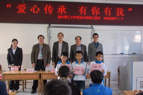 “一份爱连接你与我,大手牵小手,传递人间爱”,11月13日下午,机械与控制工程系携手扶绥县新宁二小共同开展了第二次“爱心传递,有你有我”活动。机械系副主任刘高鹏、师生代表,新宁二小校长李敏芳、副校长农桂林及该校学生代表参加了本次活动。