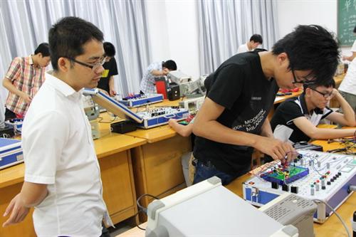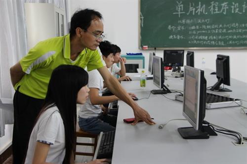 单片机程序设计与调试比赛现场,电气系周红锴主任指导学生调试程序软件 电子焊接技能比赛现场,专业教师指导学生焊接电子元器件 单管放大电路调试比赛现场,参赛选手在教师指导下反复调试参赛作品 维修电工技能比赛现场,教师指导学生进行技能操作 可编程控制器(PLC)比赛现场,教师现场指导学生进行技能操作 电气控制线路设计及绘图比赛现场,参赛选手们正在全神贯注进行手绘操作 专业教师指导学生设计参赛作品 学生参赛作品展示