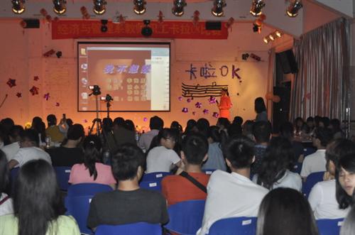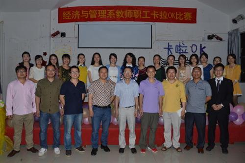 4月23日晚,由经济与管理系党总支和分工会联合举办的教职工卡拉OK比赛在空港校区大学生活动中心举行。学院办公室主任张赤、招生就业办公室主任蒋学先、经管系党总支书记梁勤、电气系党总支书记李培良以及该系教职工等参加了比赛。