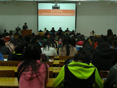 为充分发挥优秀学生党员的典型示范作用,引导广大学生形成“学先进,比先进,超先进”的良好学习氛围,12月12日晚,经济与管理系优秀学生报告团巡回演讲活动首场报告会在空港校区启智楼108教室举行。学院学生工作部主任唐承泽、团委书记张凯、经管系党总支书记梁勤等出席了报告会。