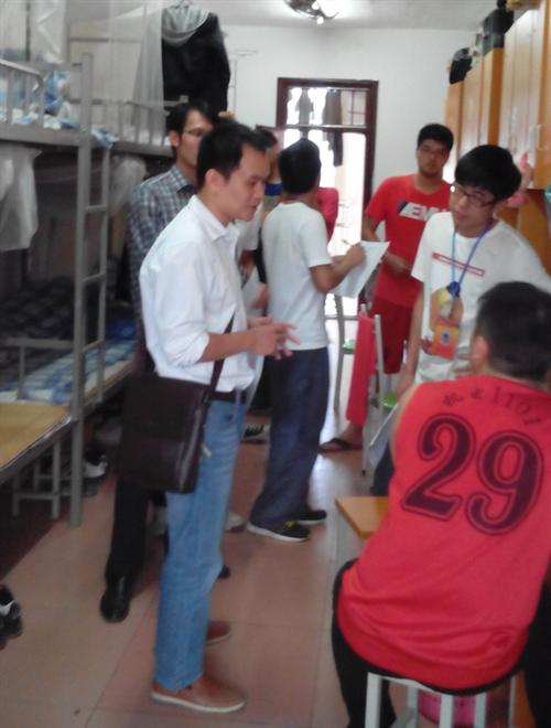 电气系党总支书记李培良带队到学生党员宿舍开展评选活动