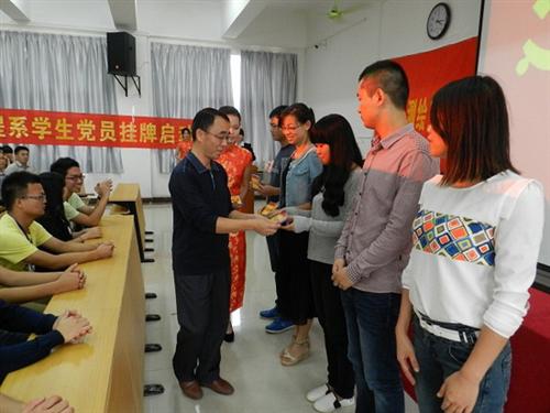学院党委常务副书记梁冬松为学生党员颁发党员宿舍标牌