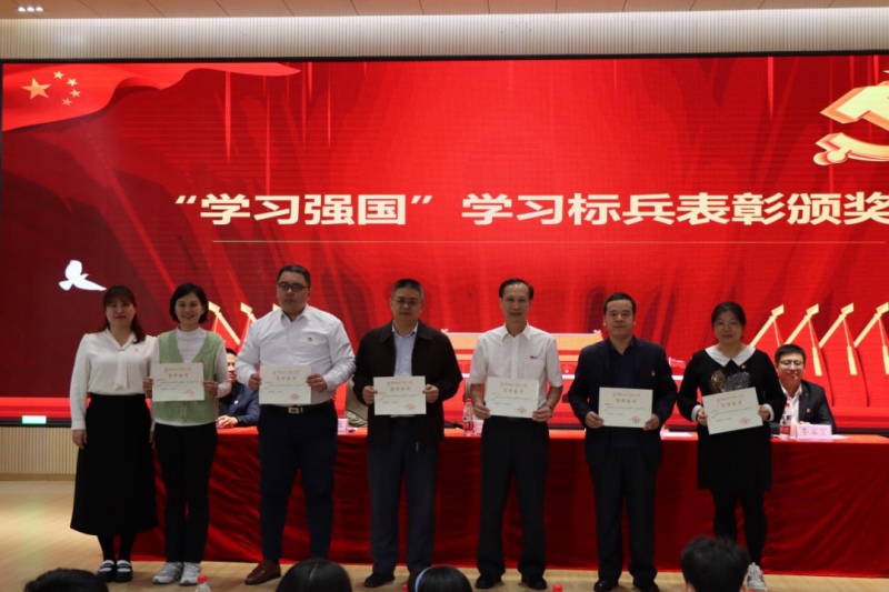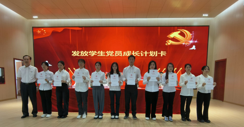 开班典礼上,学生党员、入党积极分子代表上台分别领取学生党员领航成长计划卡、学生入党积极分子启航成长计划卡,系班子成员为2023年度“学习强国学习标兵”师生党员颁发荣誉证书,宣读《“党旗领航•红帆成长”工程实施方案》《入党积极分子培训班方案》等文件。