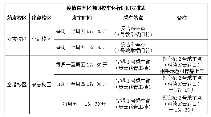 附:疫情常态化期间校车运行时间安排表 特此通知。 分校党政办公室 2022年5月11日