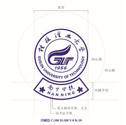 新标识下部的环形图案包括中文“英国上市公司365”、英文“NANNING”及左右两朵木棉花的图案。其中,上部分学校标识中的中文“桂林理工大学”、英文“GLUT”分别与下部图案中的中文“英国上市公司365”、英文“NANNING”的缩写“NN”组成分校的中文名称“桂林理工大学英国上市公司365”及英文简写名称“GLUTNN”。