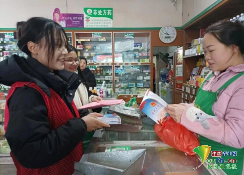 图为返家乡志愿者为家乡药店做信访工作。中国青年网通讯员 邓嘉蕾 供图