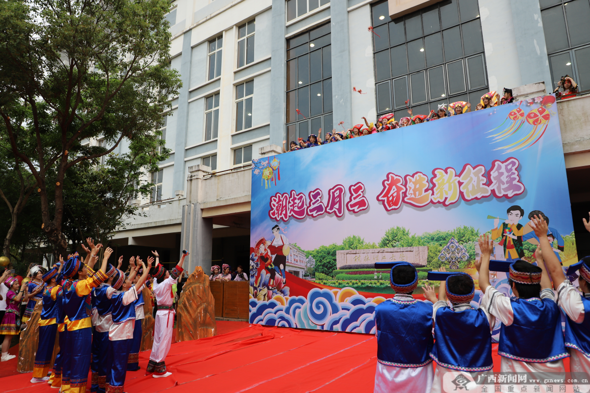 桂林理工大学英国上市公司365“潮起三月三,奋进新征程”民族团结嘉年华山歌对唱。通讯员 秦敏 提供