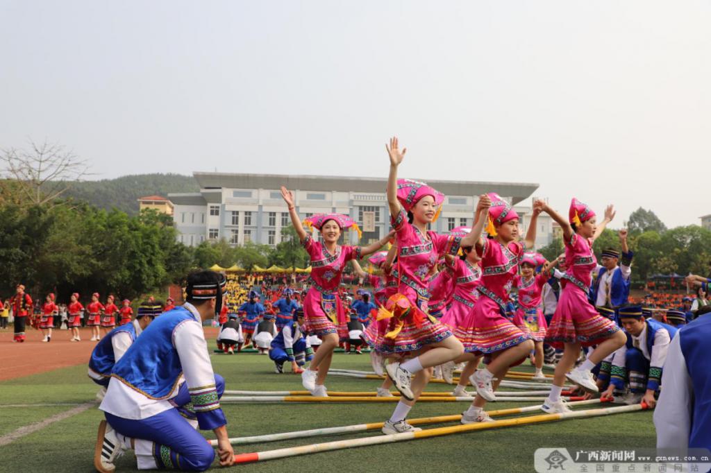 大力弘扬民族体育文化,构筑中华民族共有精神家园。组织舞龙舞狮队、武术队、太极队、绣球队等学生团队进驻地企业、社区、高校和中小学,开展校园民族传统体育活动、“壮乡三月三”民俗文化活动等,以点带面做好民族传统体育文化传承创新。
