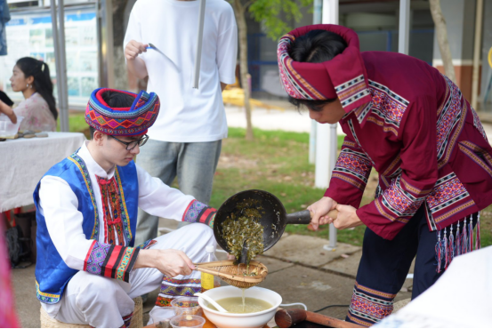 优秀民族文化展览上非遗文化瑶族油茶制作技艺展示现场。张卫秀