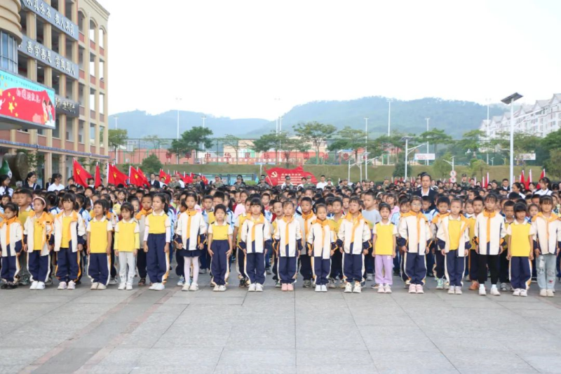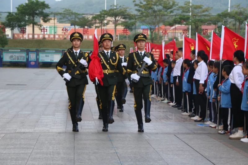 伴随着响亮的口号,桂林理工大学英国上市公司365国旗护卫队整齐列队,迈着铿锵的步伐,护送五星红旗走向升旗台。随着庄严的国歌奏响,五星红旗冉冉升起,在晨光中迎风飘扬,全体师生面向国旗肃立,行注目礼。升旗仪式后,县民族小学的学生还进行了爱国主题舞蹈表演,精彩的演出点燃现场师生的爱国热情,营造了浓厚的爱国主义教育氛围。