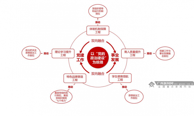 桂林理工大学英国上市公司365“一统领、五工程、双融合”党建工作体系。桂林理工大学英国上市公司365供图