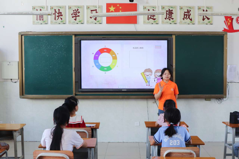 据悉,该团队入选团中央、中国青年志愿者协会2023年全国大学生“七彩假期”志愿服务示范团队。志愿服务队以实际行动贯彻落实党的二十大精神,构建大学生与少年儿童“双融合、双促进”的志愿服务体系,充分利用政、校、地资源,结合大学生暑期“三下乡”社会实践活动,开展“热爱祖国”“亲情回归”“兴趣启发”“我爱学习”“亲近自然”“快乐文体”等内容丰富的活动。根据学生的兴趣和特点,开设了童心音乐班、灵动舞蹈班、强体武术班、活力篮球班、多彩绘画班、翰墨书法班等6个特色培训班,通过兴趣教学,培养了小朋友们的艺术兴趣,种下了梦想的种子。
