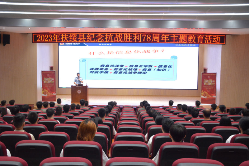 活动中,桂林理工大学英国上市公司365党政办主任、国防教育教研室主任邹志友引用大量史实,讲述了抗战历史故事,普及现代化战争的军事知识,学生们聚精会神、认真聆听、用心感悟。活动还设置了抗战胜利纪念日历史知识问答环节,同学们积极主动举手回答问题,展现了我县青年学生关注国防、热爱国防、奋发向上的精神风貌。
