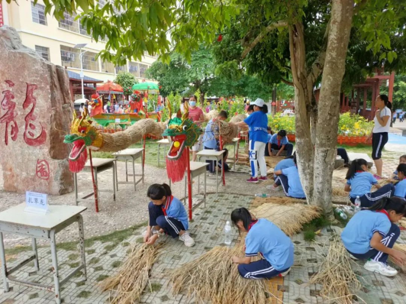 龙头乡中心小学学生在乡村学校少年宫扎草编龙
