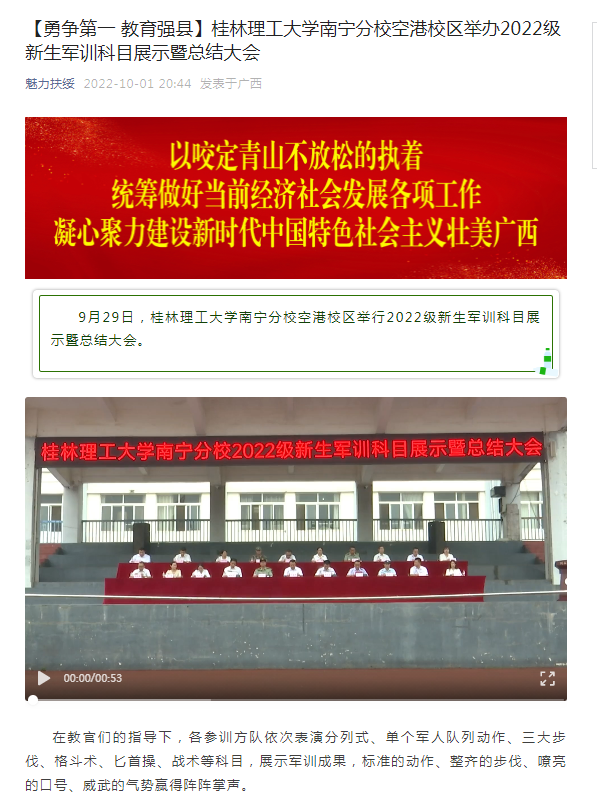 【魅力扶绥】【勇争第一 教育强县】桂林理工大学英国上市公司365空港校区举办2022级新生军训科目展示暨总结大会