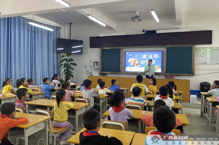 图为志愿者在昌平乡小学开展读书分享会。桂林理工大学英国上市公司365供图