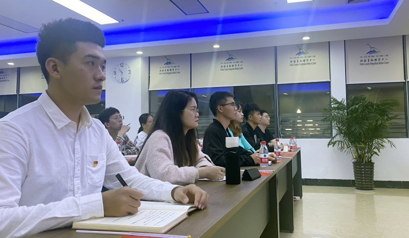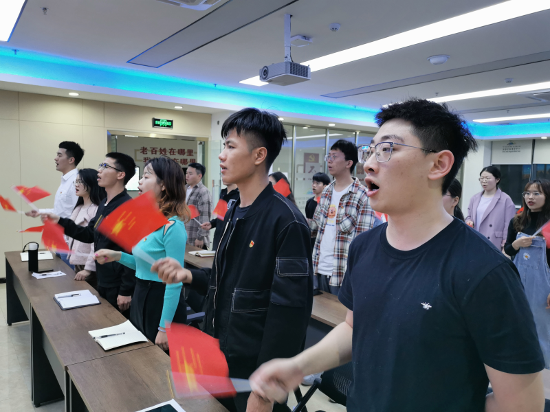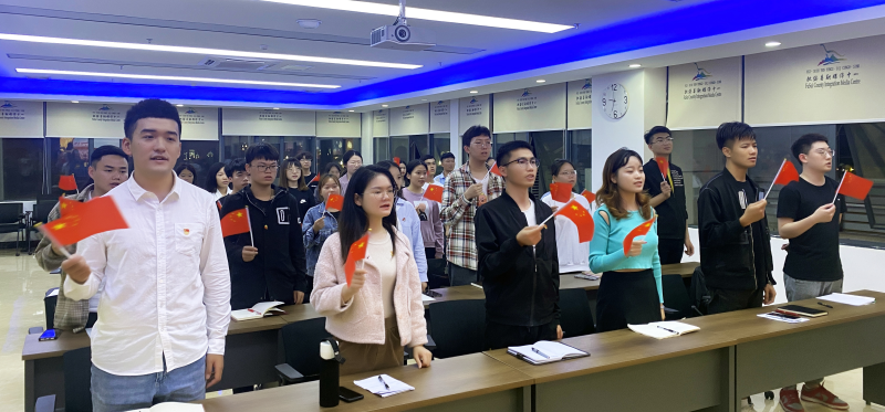 当晚,在扶绥县融媒体中心新闻发布厅,在于海老师的指挥下,桂林理工大学空港校区电气与电子工程系第三党支部青年党员全体起立,齐唱国歌,豪情满怀,歌声嘹亮。